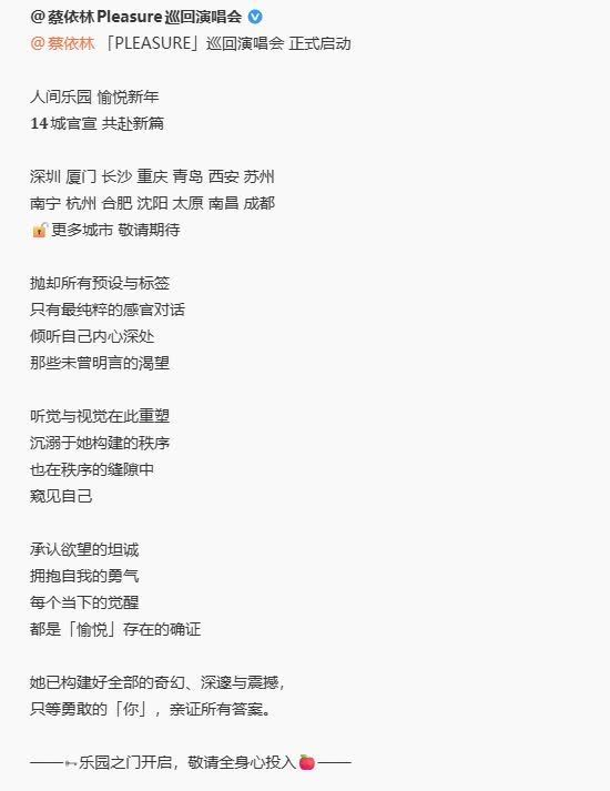 1月7日,蔡依林方发布严正声明,针对近期网络上关于蔡依林演唱会内容的断章取义以及不实解读进行维权。