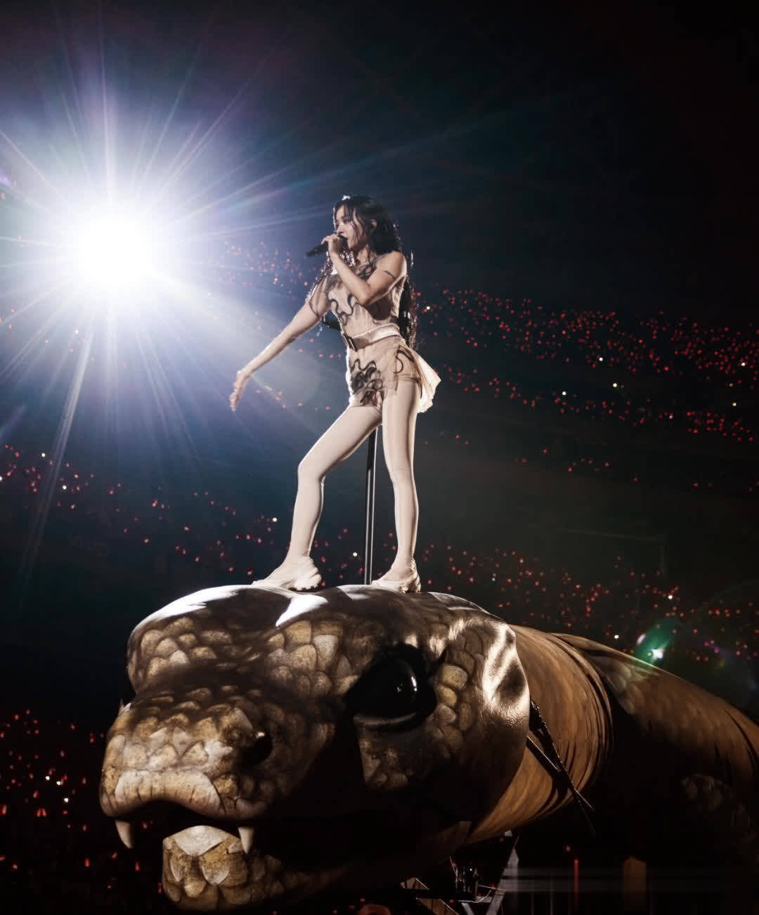 近日,蔡依林在“pleasure”巡回演唱会舞台上脚踏30米巨型机械蛇出场,引发热议。